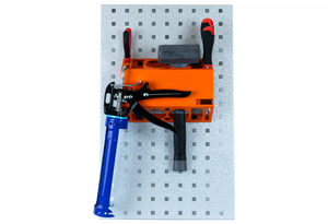 Een Smartbox voor een groter gereedschap of tube. Het gat is 105x105mm en 235mm hoog en houdt het gereedschap of het materiaal stabiel. De Smartbox Tube Large worden op een gereedschapspaneel of aan de zijkant van een van onze stellingsystemen geplaatst.